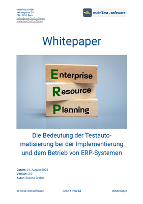 Im Whitepaper mit dem Titel "Die Bedeutung der Testautomatisierung bei der Implementierung und dem Betrieb von ERP-Systemen" beleuchten wir, warum eine angemessene Qualitätssicherung von ERP-Systemen für Unternehmen unerlässlich ist und wie diese auf einfache und kosteneffiziente Art und Weise sichergestellt werden kann. Auf folgende Punkte gehen wir dabei ein: